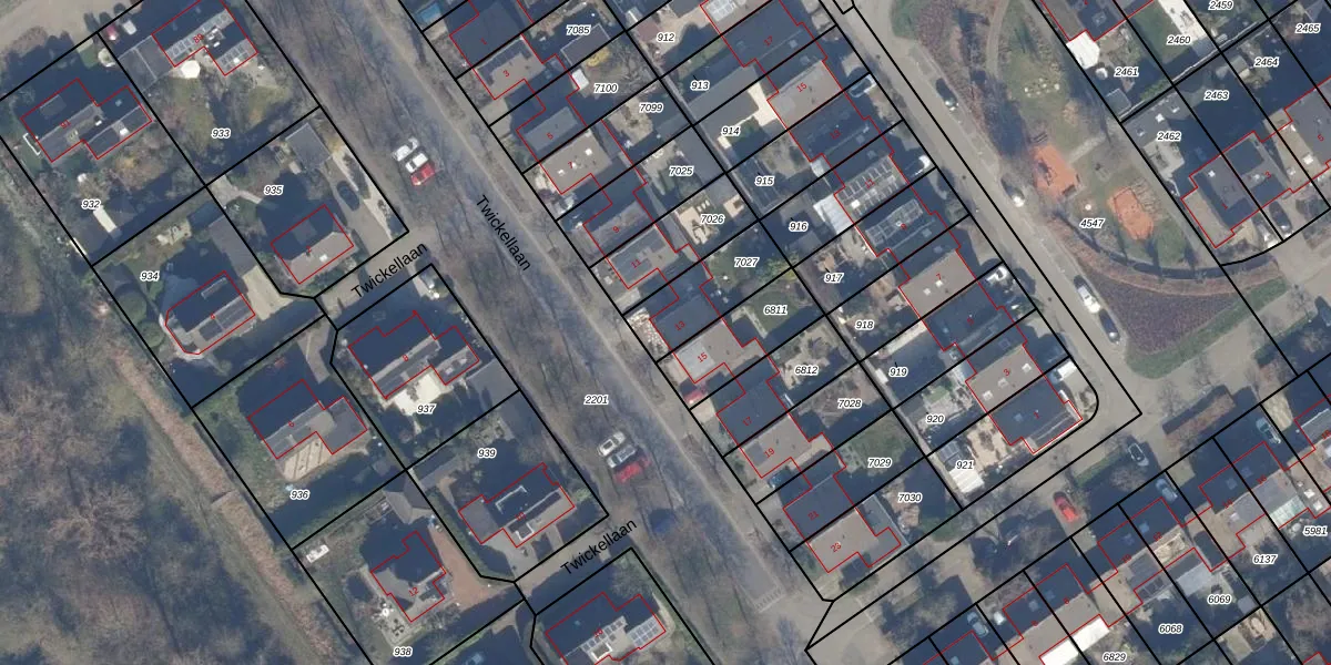 Gebruik de zoekbalk of klik op een perceel voor informatie over de adressen binnen dit perceel.