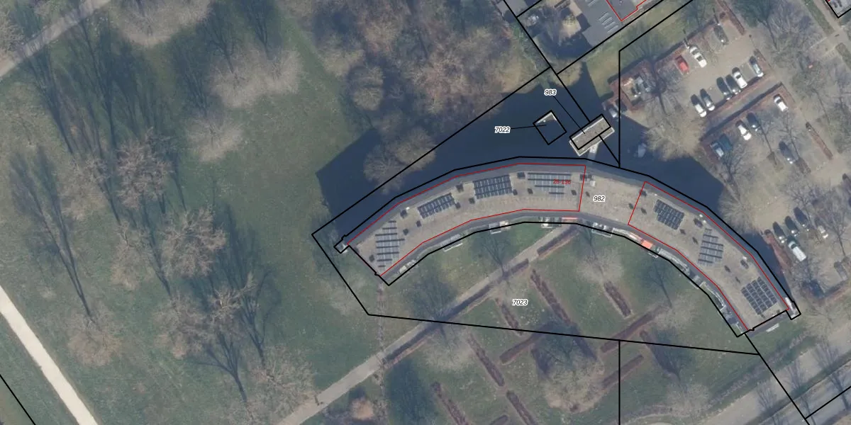 Het adres ligt op het perceel AMR04-P-982, dat zich in de kadastrale gemeente Almere bevindt. De gemiddelde perceelgrootte in Almere is 3327,75 m². Dit perceel is kleiner: de perceeloppervlakte bedraagt 1702 m². De grootste perceeloppervlakte in de kadastrale gemeente is 32,12 km². De kleinste oppervlakte bedraagt 0 m². Op het perceel zijn 55 adressen aanwezig. In de Basisregistratie Kadaster (BRK) werden de grenzen van het perceel geregistreerd op 07-09-2006.
