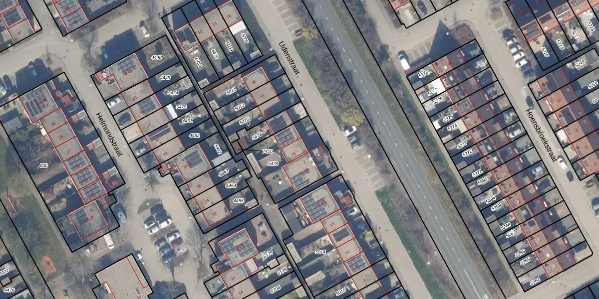 Het perceel waarop Udenstraat 25 staat heeft een oppervlakte van 510 m². Dit is een groot perceel. De perceeloppervlakte wordt geregistreerd door het Kadaster. Gedetailleerde informatie over de maten van dit perceel kunt u vinden in het rapport Kadastrale kaart met maatvoering van Udenstraat 25.