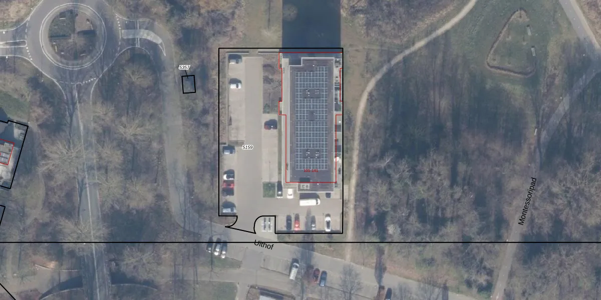 Het perceel waarop Uithof 105 staat heeft een oppervlakte van 2470 m². Dit is een zeer groot perceel. De perceeloppervlakte wordt geregistreerd door het Kadaster. Gedetailleerde informatie over de maten van dit perceel kunt u vinden in het rapport Kadastrale kaart met maatvoering van Uithof 105.