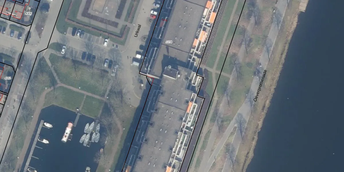 Het perceel waarop Urkwal 34 staat heeft een oppervlakte van 8079 m². Dit is een zeer groot perceel. De perceeloppervlakte wordt geregistreerd door het Kadaster. Gedetailleerde informatie over de maten van dit perceel kunt u vinden in het rapport Kadastrale kaart met maatvoering van Urkwal 34.