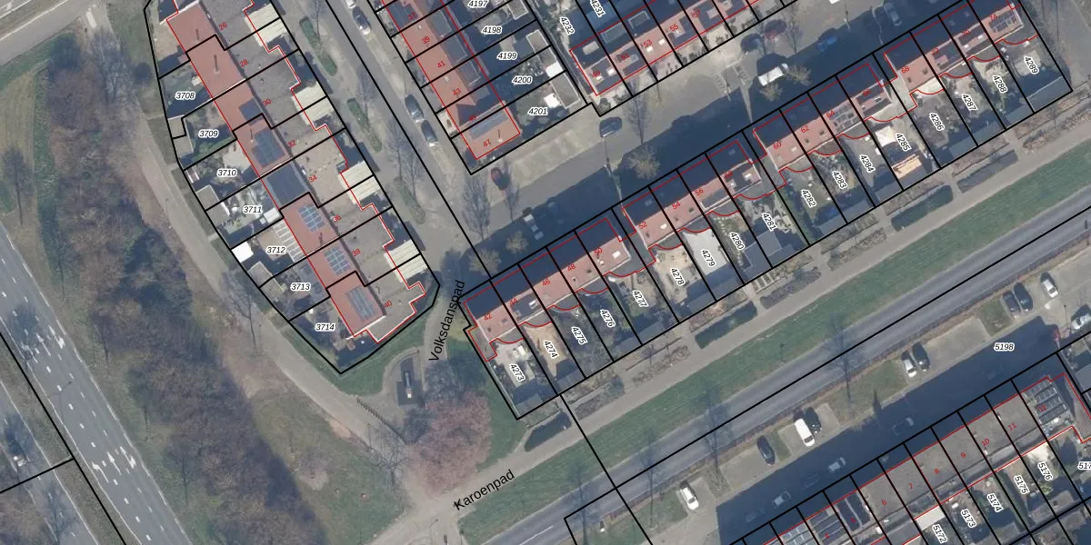 Het adres is gelegen op perceel 4275 in de sectie U en de kadastrale gemeente Almere. De kadastrale aanduiding is aldus AMR04-U-4275. De gemiddelde perceelgrootte in Almere is 3327,62 m². Dit perceel is kleiner: de perceeloppervlakte bedraagt 148 m². Het kleinste perceel in de kadastrale gemeente is 0 m² groot. De grootste perceeloppervlakte is 32,12 km². Dit is het enige adres dat aanwezig is op het perceel. De huidige grenzen van het perceel zijn digitaal in de Basisregistratie Kadaster (BRK) geregistreerd op 31-08-2001.