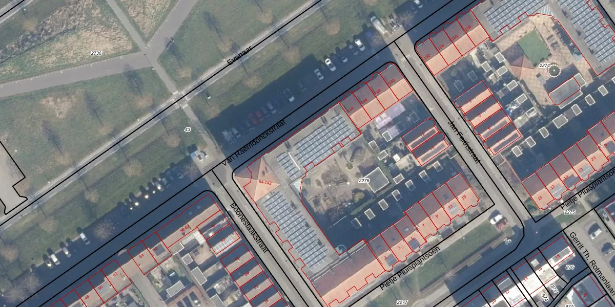 Van Raemdonckstraat 100 is gelegen op kadastraal perceel AMR04R2276. Deze kadastrale aanduiding is uniek en wordt gebruikt door het Kadaster om eigendomsrechten en andere zakelijke rechten vast te leggen. Het perceel maakt onderdeel uit van de kadastrale gemeente Almere.