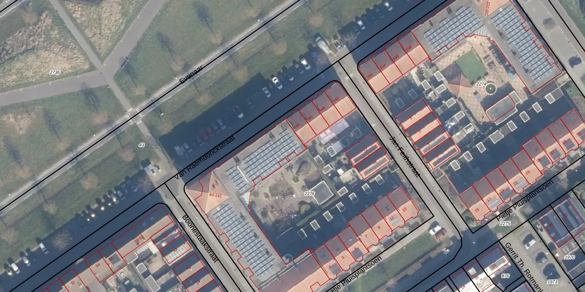 Het perceel waarop Van Raemdonckstraat 126 staat heeft een oppervlakte van 3770 m². Dit is een zeer groot perceel. De perceeloppervlakte wordt geregistreerd door het Kadaster. Gedetailleerde informatie over de maten van dit perceel kunt u vinden in het rapport Kadastrale kaart met maatvoering van Van Raemdonckstraat 126.