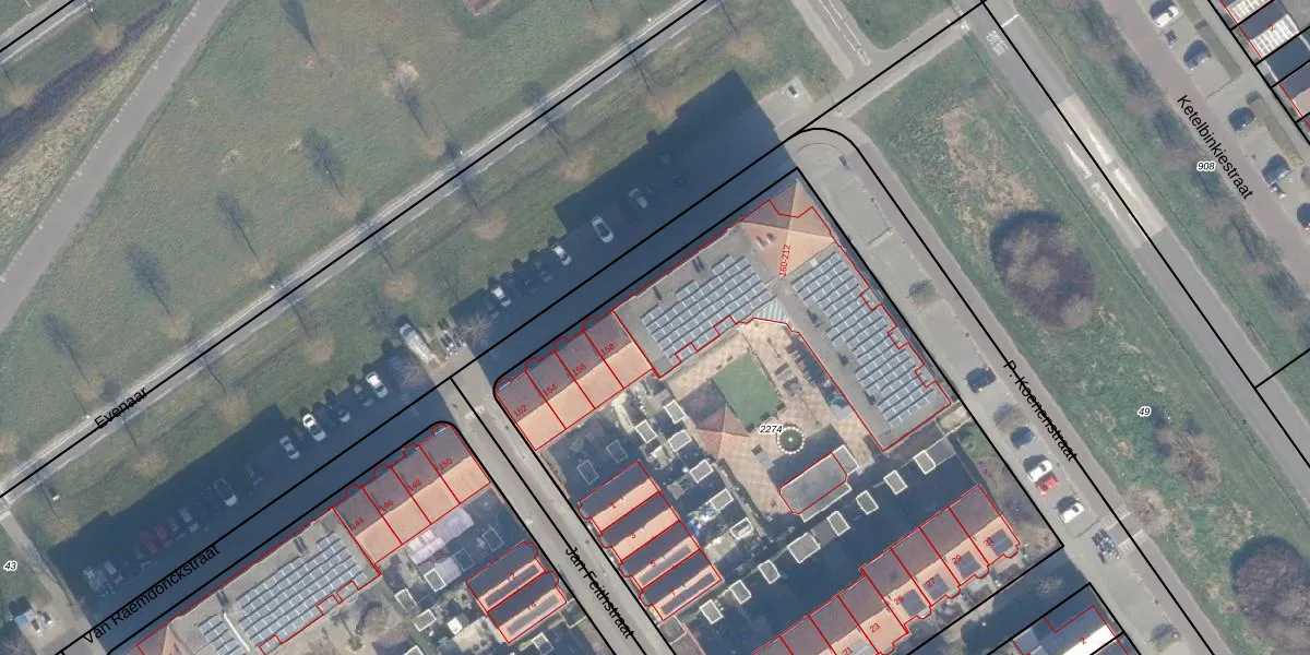 Het perceel waarop Van Raemdonckstraat 160 staat heeft een oppervlakte van 4085 m². Dit is een zeer groot perceel. De perceeloppervlakte wordt geregistreerd door het Kadaster. Gedetailleerde informatie over de maten van dit perceel kunt u vinden in het rapport Kadastrale kaart met maatvoering van Van Raemdonckstraat 160.