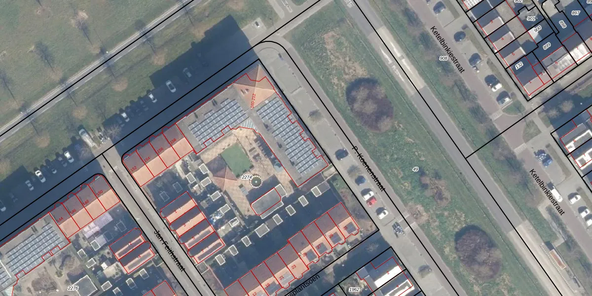 Het perceel waarop het adres ligt is AMR04-R-2274. De afkorting 'AMR04' staat voor kadastrale gemeente Almere. Het perceel is met 4085 m² relatief groot. Het gemiddelde ligt in de kadastrale gemeente Almere op 3327,75 m². Het grootste perceel in de kadastrale gemeente is 32,12 km². Het kleinste perceel heeft een oppervlakte van 0 m². Op het perceel zijn 44 adressen aanwezig. De laatste wijziging in het de Basisregistratie Kadaster (BRK) was op 05-12-2008.