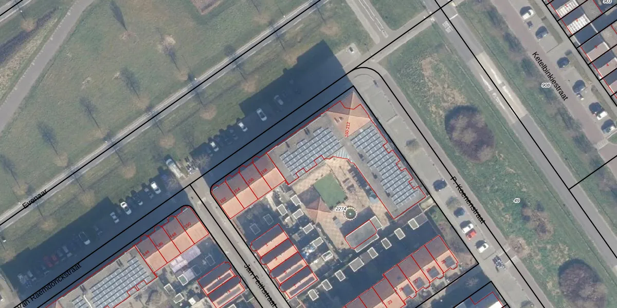 Het perceel waarop Van Raemdonckstraat 188 staat heeft een oppervlakte van 4085 m². Dit is een zeer groot perceel. De perceeloppervlakte wordt geregistreerd door het Kadaster. Gedetailleerde informatie over de maten van dit perceel kunt u vinden in het rapport Kadastrale kaart met maatvoering van Van Raemdonckstraat 188.