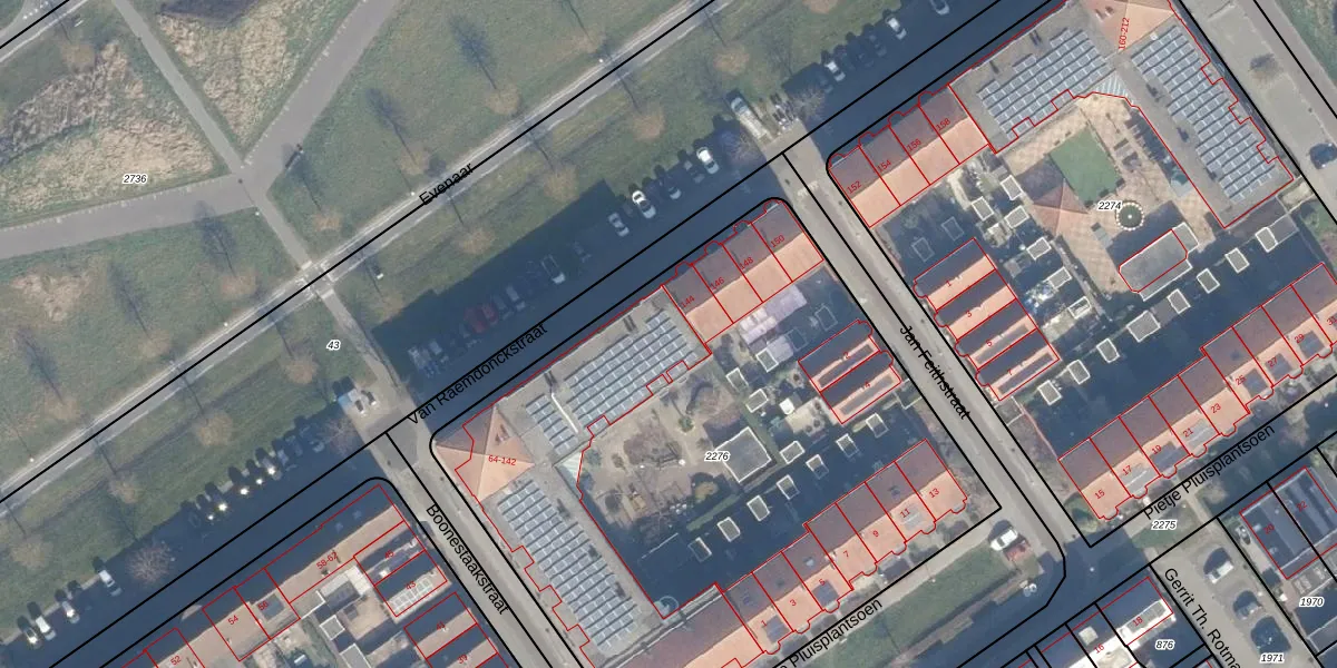 Het perceel waarop Van Raemdonckstraat 82 staat heeft een oppervlakte van 3770 m². Dit is een zeer groot perceel. De perceeloppervlakte wordt geregistreerd door het Kadaster. Gedetailleerde informatie over de maten van dit perceel kunt u vinden in het rapport Kadastrale kaart met maatvoering van Van Raemdonckstraat 82.