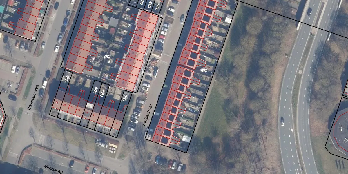 Het perceel waarop Vanillestraat 16 staat heeft een oppervlakte van 2330 m². Dit is een zeer groot perceel. De perceeloppervlakte wordt geregistreerd door het Kadaster. Gedetailleerde informatie over de maten van dit perceel kunt u vinden in het rapport Kadastrale kaart met maatvoering van Vanillestraat 16.