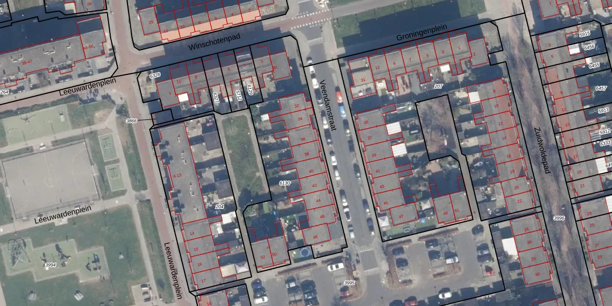 Het perceel waarop Veendamstraat 38 staat heeft een oppervlakte van 1564 m². Dit is een zeer groot perceel. De perceeloppervlakte wordt geregistreerd door het Kadaster. Gedetailleerde informatie over de maten van dit perceel kunt u vinden in het rapport Kadastrale kaart met maatvoering van Veendamstraat 38.