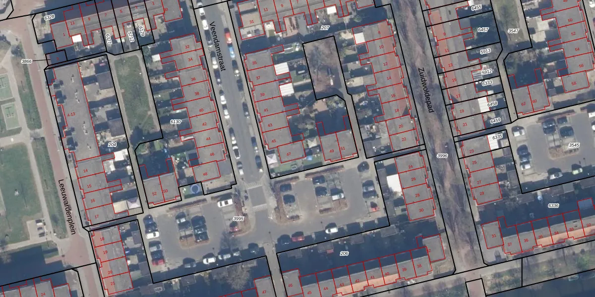 Het perceel waarop Veendamstraat 47 staat heeft een oppervlakte van 3001 m². Dit is een zeer groot perceel. De perceeloppervlakte wordt geregistreerd door het Kadaster. Gedetailleerde informatie over de maten van dit perceel kunt u vinden in het rapport Kadastrale kaart met maatvoering van Veendamstraat 47.