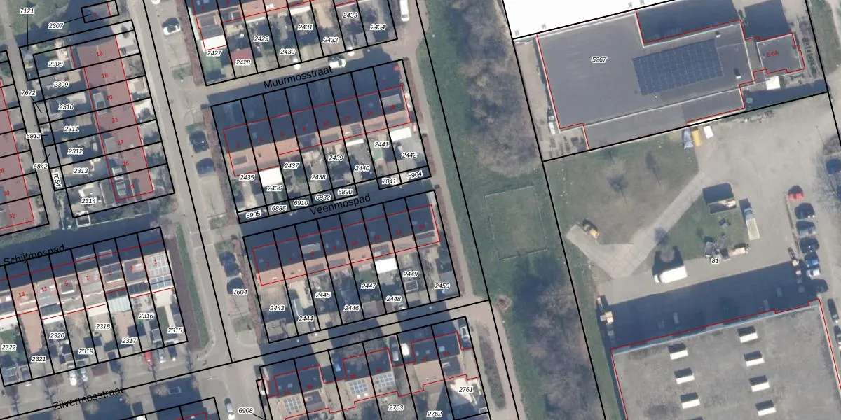 Het perceel waarop Veenmospad 16 staat heeft een oppervlakte van 187 m². Dit is een middelgroot perceel. De perceeloppervlakte wordt geregistreerd door het Kadaster. Gedetailleerde informatie over de maten van dit perceel kunt u vinden in het rapport Kadastrale kaart met maatvoering van Veenmospad 16.