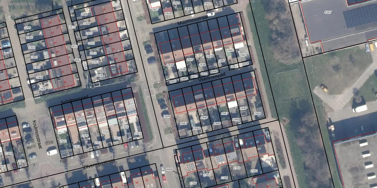 Gebruik de zoekbalk of klik op een perceel voor informatie over de adressen binnen dit perceel.