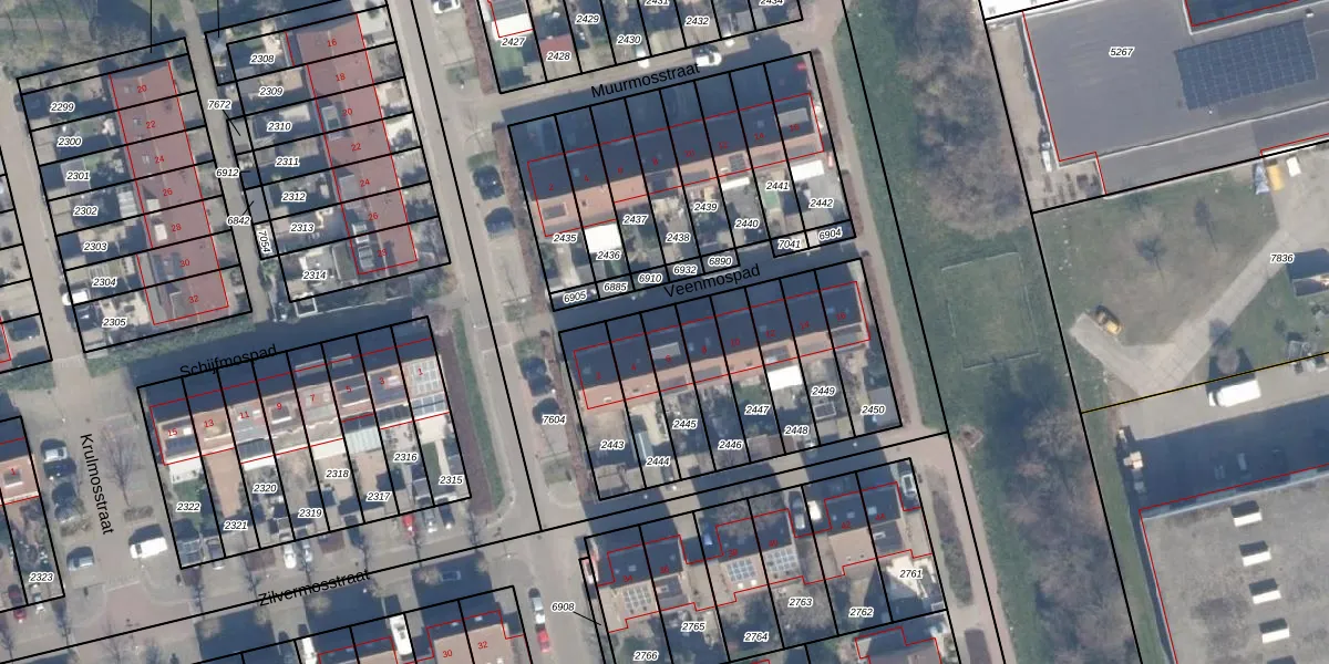 Veenmospad 6 is gelegen op kadastraal perceel AMR04O2445. Deze kadastrale aanduiding is uniek en wordt gebruikt door het Kadaster om eigendomsrechten en andere zakelijke rechten vast te leggen. Het perceel maakt onderdeel uit van de kadastrale gemeente Almere.