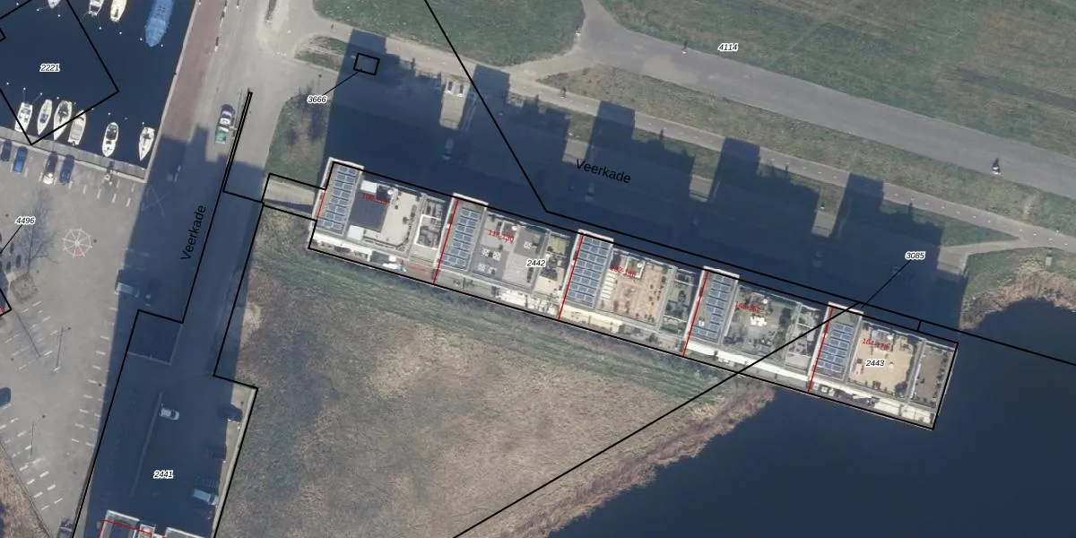 Veerkade 116 is gelegen op kadastraal perceel AMR04H2442. Deze kadastrale aanduiding is uniek en wordt gebruikt door het Kadaster om eigendomsrechten en andere zakelijke rechten vast te leggen. Het perceel maakt onderdeel uit van de kadastrale gemeente Almere.