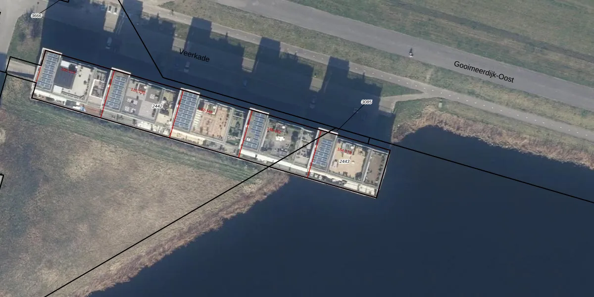 Het perceel waarop Veerkade 148 staat heeft een oppervlakte van 1585 m². Dit is een zeer groot perceel. De perceeloppervlakte wordt geregistreerd door het Kadaster. Gedetailleerde informatie over de maten van dit perceel kunt u vinden in het rapport Kadastrale kaart met maatvoering van Veerkade 148.