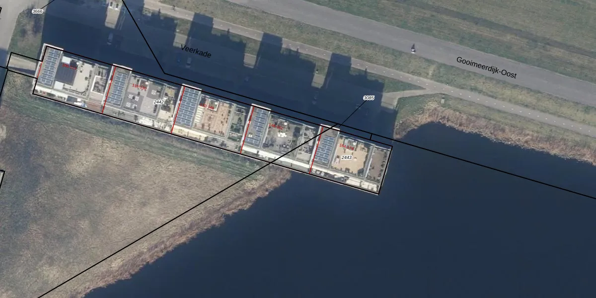 Het perceel waarop Veerkade 152 staat heeft een oppervlakte van 496 m². Dit is een groot perceel. De perceeloppervlakte wordt geregistreerd door het Kadaster. Gedetailleerde informatie over de maten van dit perceel kunt u vinden in het rapport Kadastrale kaart met maatvoering van Veerkade 152.