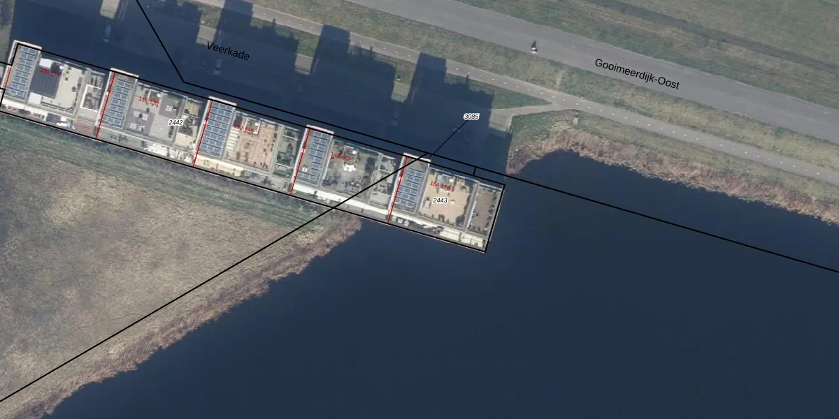 Het perceel waarop Veerkade 174 staat heeft een oppervlakte van 496 m². Dit is een groot perceel. De perceeloppervlakte wordt geregistreerd door het Kadaster. Gedetailleerde informatie over de maten van dit perceel kunt u vinden in het rapport Kadastrale kaart met maatvoering van Veerkade 174.
