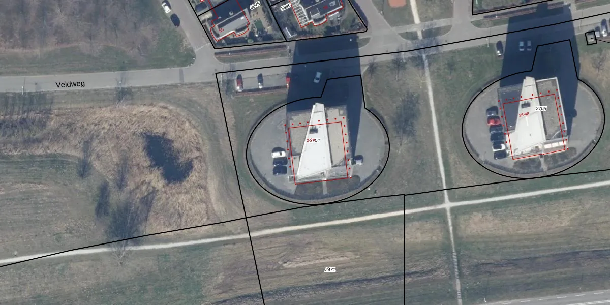Veldweg 4 is gelegen op kadastraal perceel AMR04H2704. Deze kadastrale aanduiding is uniek en wordt gebruikt door het Kadaster om eigendomsrechten en andere zakelijke rechten vast te leggen. Het perceel maakt onderdeel uit van de kadastrale gemeente Almere.