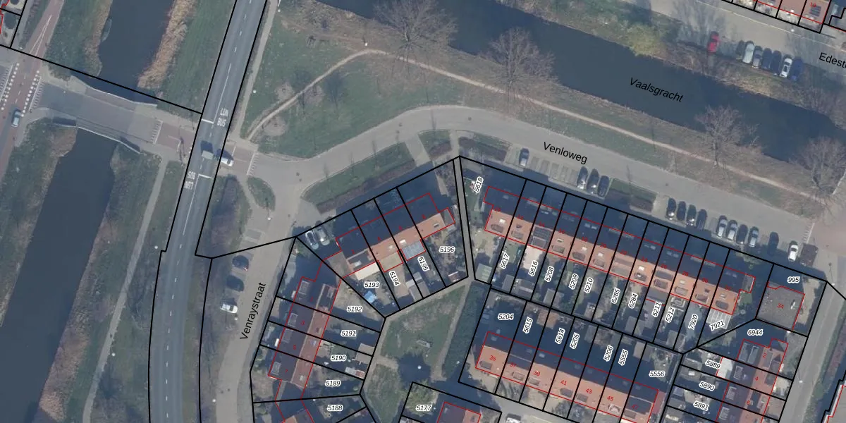 Gebruik de zoekbalk of klik op een perceel voor informatie over de adressen binnen dit perceel.