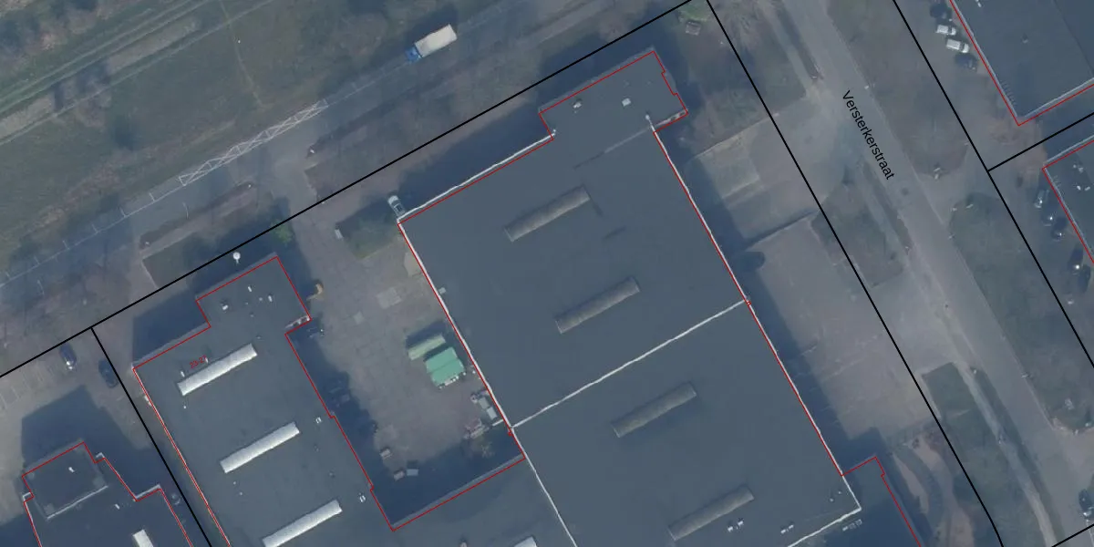 Het perceel waarop Versterkerstraat 2 staat heeft een oppervlakte van 1,9 ha. Dit is een zeer groot perceel. De perceeloppervlakte wordt geregistreerd door het Kadaster. Gedetailleerde informatie over de maten van dit perceel kunt u vinden in het rapport Kadastrale kaart met maatvoering van Versterkerstraat 2.