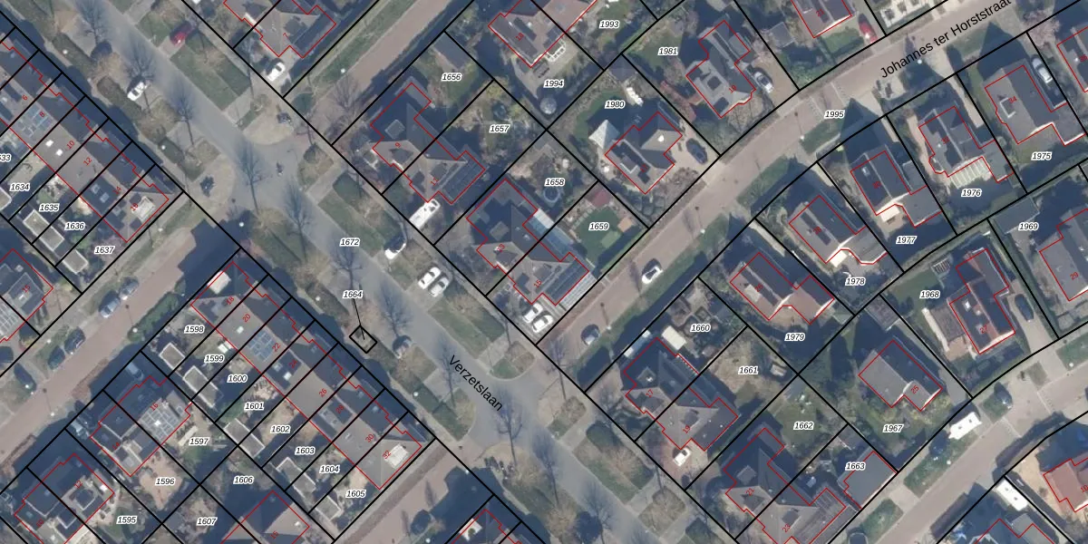 Het perceel waarop Verzetslaan 15 staat heeft een oppervlakte van 385 m². Dit is een groot perceel. De perceeloppervlakte wordt geregistreerd door het Kadaster. Gedetailleerde informatie over de maten van dit perceel kunt u vinden in het rapport Kadastrale kaart met maatvoering van Verzetslaan 15.
