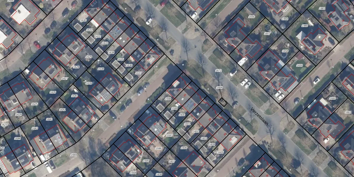 Het perceel waarop Verzetslaan 18 staat heeft een oppervlakte van 186 m². Dit is een middelgroot perceel. De perceeloppervlakte wordt geregistreerd door het Kadaster. Gedetailleerde informatie over de maten van dit perceel kunt u vinden in het rapport Kadastrale kaart met maatvoering van Verzetslaan 18.