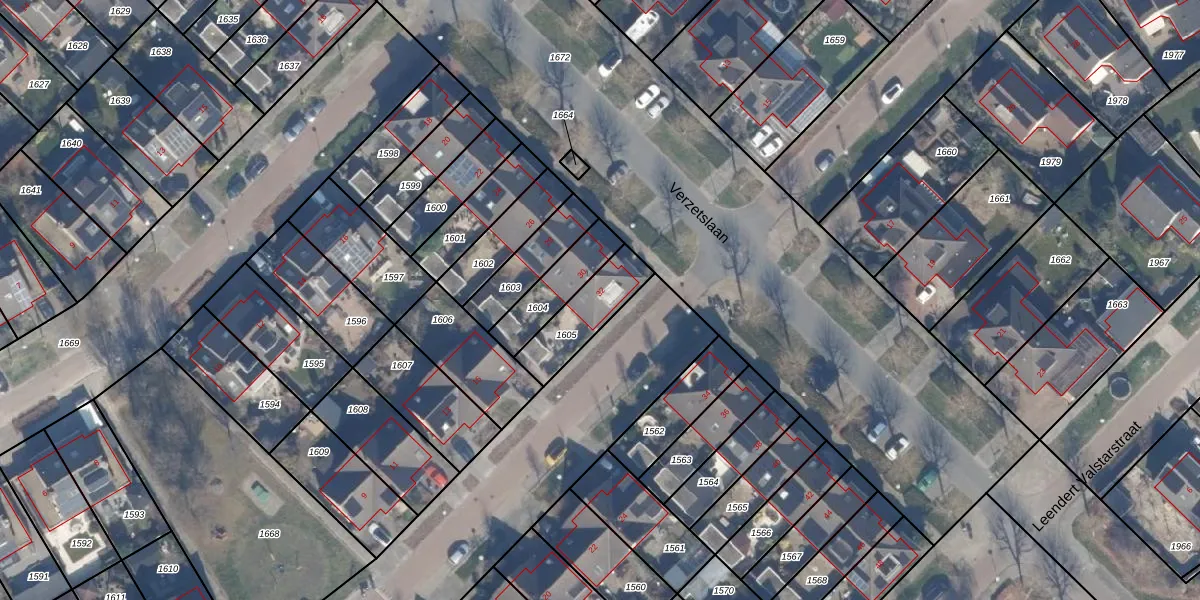 Het perceel waarop Verzetslaan 32 staat heeft een oppervlakte van 186 m². Dit is een middelgroot perceel. De perceeloppervlakte wordt geregistreerd door het Kadaster. Gedetailleerde informatie over de maten van dit perceel kunt u vinden in het rapport Kadastrale kaart met maatvoering van Verzetslaan 32.
