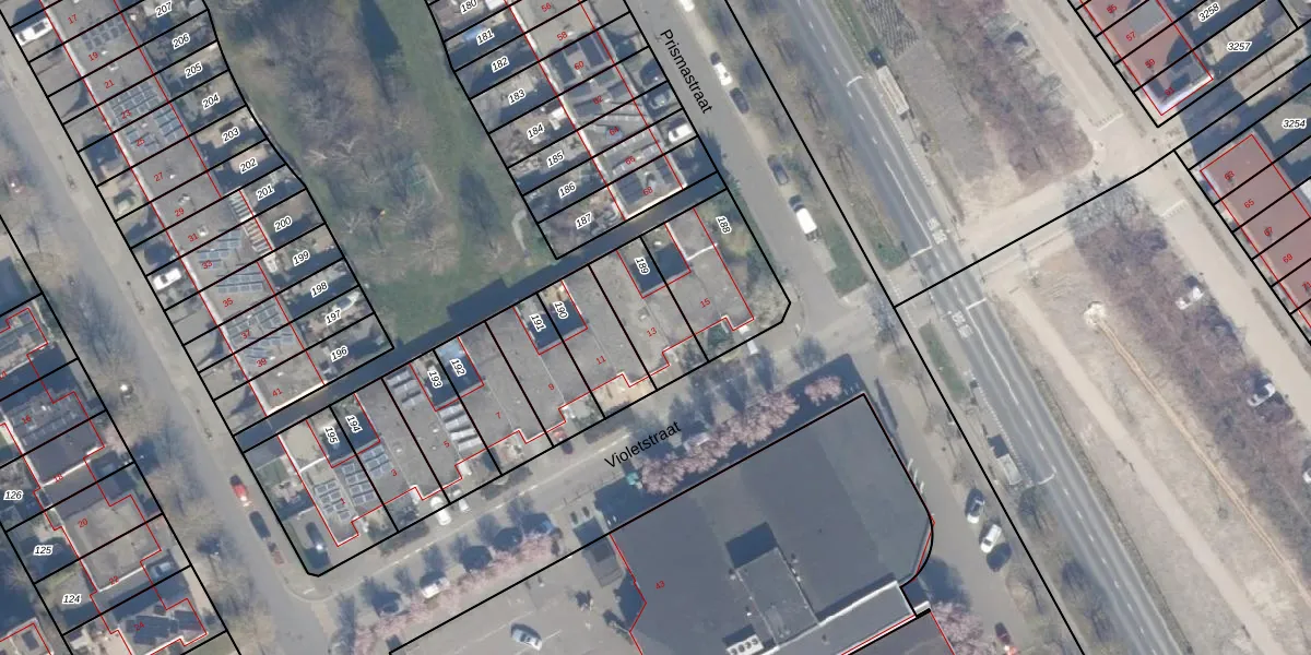 Het perceel waarop Violetstraat 13 staat heeft een oppervlakte van 197 m². Dit is een middelgroot perceel. De perceeloppervlakte wordt geregistreerd door het Kadaster. Gedetailleerde informatie over de maten van dit perceel kunt u vinden in het rapport Kadastrale kaart met maatvoering van Violetstraat 13.