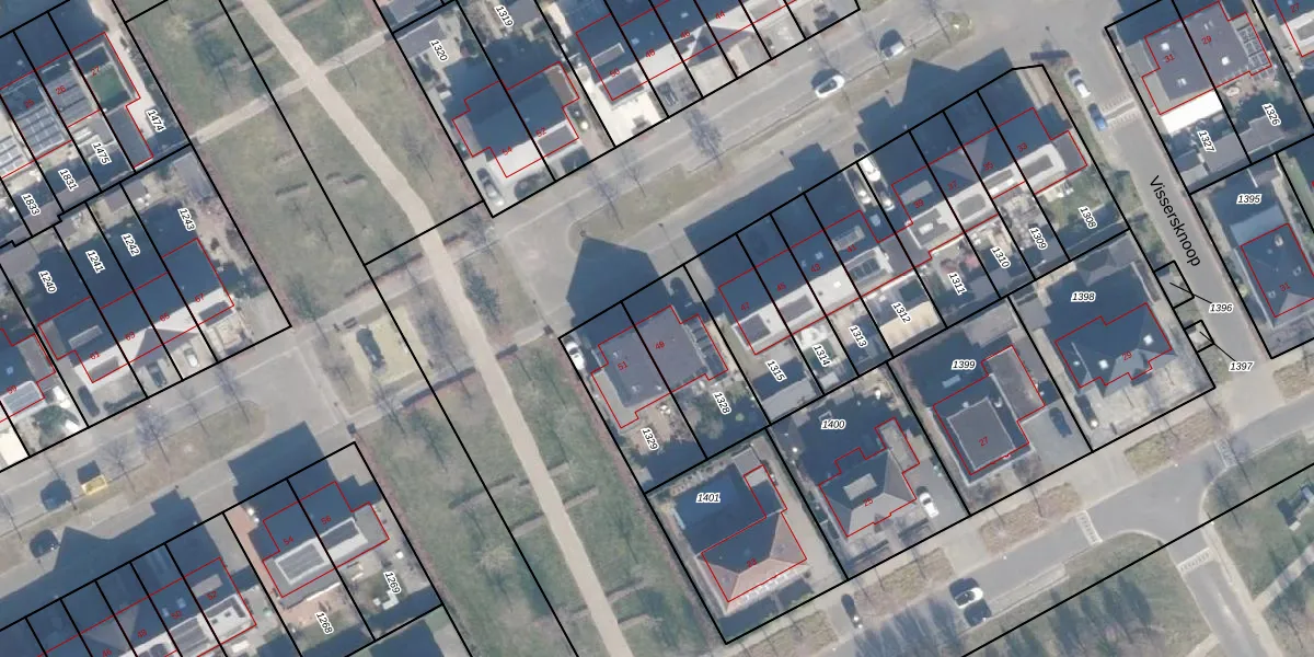 Het perceel waarop Vissersknoop 49 staat heeft een oppervlakte van 303 m². Dit is een groot perceel. De perceeloppervlakte wordt geregistreerd door het Kadaster. Gedetailleerde informatie over de maten van dit perceel kunt u vinden in het rapport Kadastrale kaart met maatvoering van Vissersknoop 49.