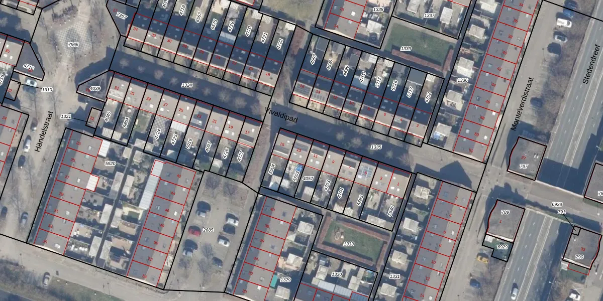 Het perceel waarop Vivaldipad 13 staat heeft een oppervlakte van 117 m². Dit is een middelgroot perceel. De perceeloppervlakte wordt geregistreerd door het Kadaster. Gedetailleerde informatie over de maten van dit perceel kunt u vinden in het rapport Kadastrale kaart met maatvoering van Vivaldipad 13.