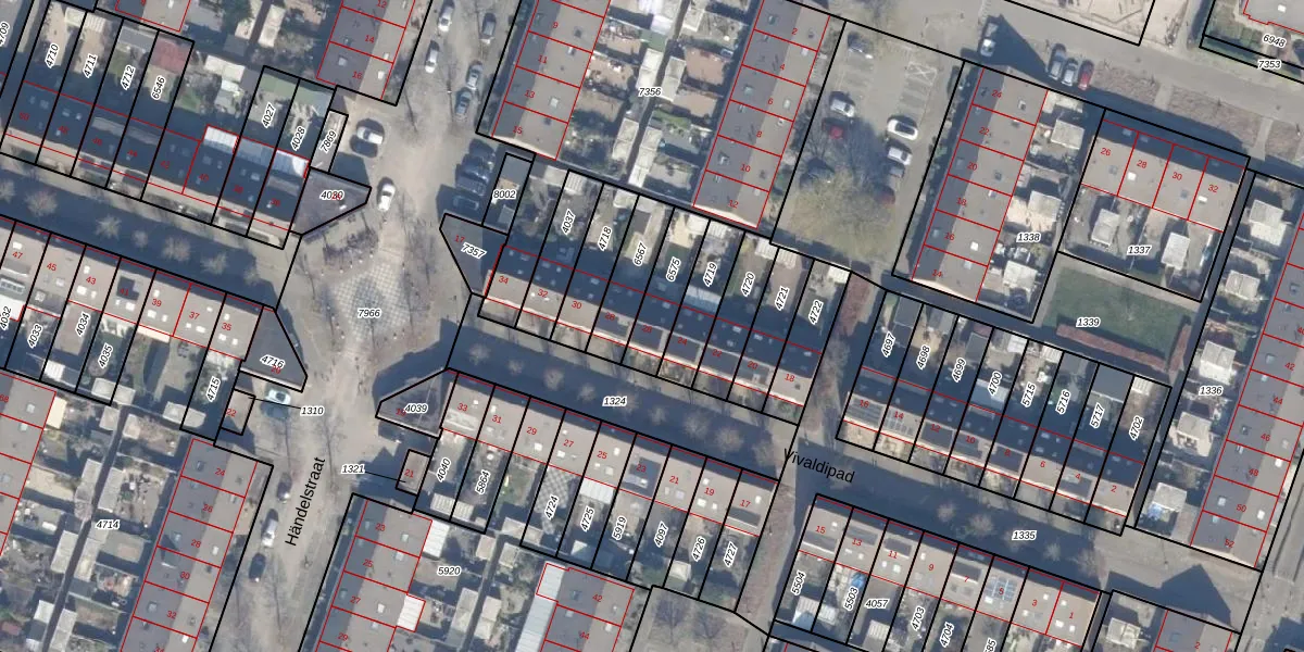 Gebruik de zoekbalk of klik op een perceel voor informatie over de adressen binnen dit perceel.