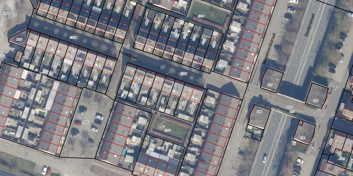 Gebruik de zoekbalk of klik op een perceel voor informatie over de adressen binnen dit perceel.