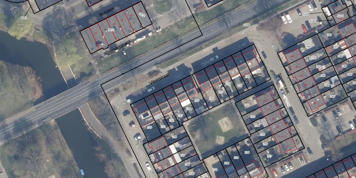Het perceel waarop Vleetstraat 13 staat heeft een oppervlakte van 126 m². Dit is een middelgroot perceel. De perceeloppervlakte wordt geregistreerd door het Kadaster. Gedetailleerde informatie over de maten van dit perceel kunt u vinden in het rapport Kadastrale kaart met maatvoering van Vleetstraat 13.