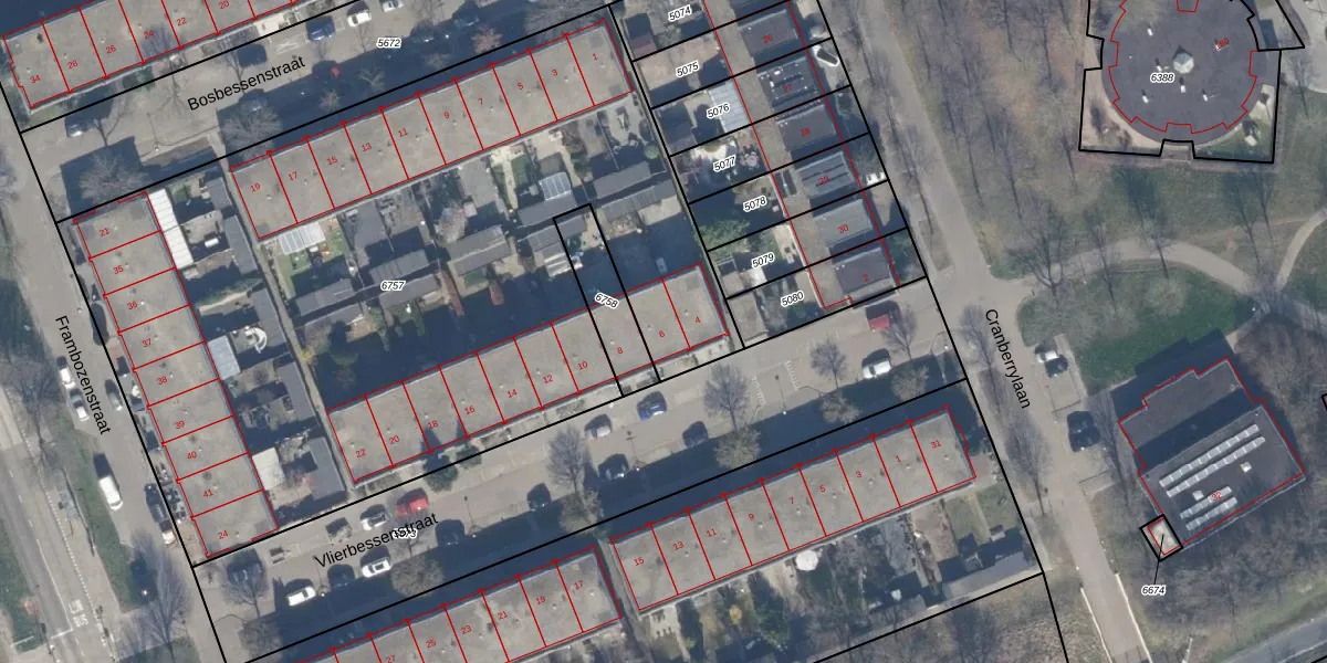 Vlierbessenstraat 6 is gelegen op kadastraal perceel AMR04U6757. Deze kadastrale aanduiding is uniek en wordt gebruikt door het Kadaster om eigendomsrechten en andere zakelijke rechten vast te leggen. Het perceel maakt onderdeel uit van de kadastrale gemeente Almere.