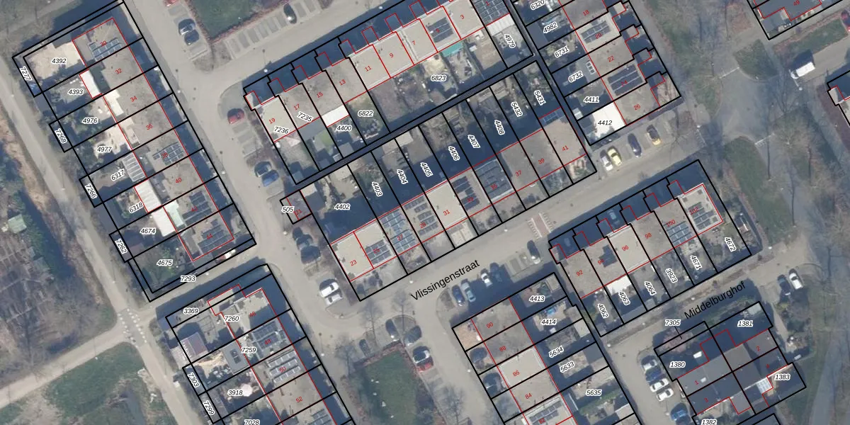 Het perceel waarop Vlissingenstraat 29 staat heeft een oppervlakte van 188 m². Dit is een middelgroot perceel. De perceeloppervlakte wordt geregistreerd door het Kadaster. Gedetailleerde informatie over de maten van dit perceel kunt u vinden in het rapport Kadastrale kaart met maatvoering van Vlissingenstraat 29.