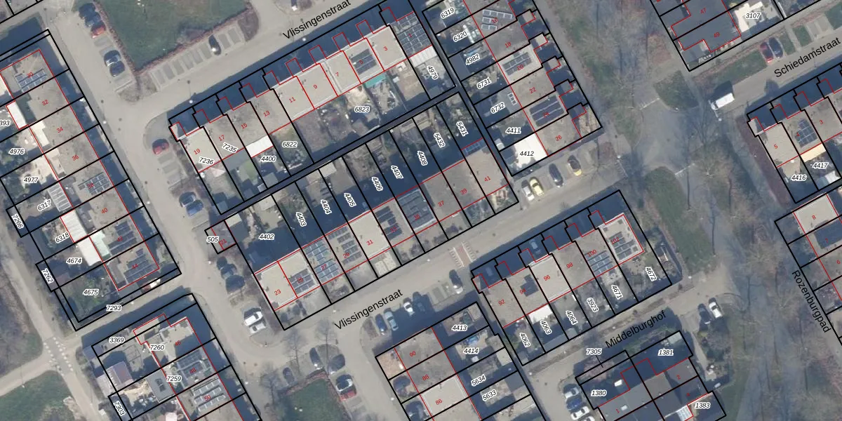 Vlissingenstraat 35 is gelegen op kadastraal perceel AMR04K4407. Deze kadastrale aanduiding is uniek en wordt gebruikt door het Kadaster om eigendomsrechten en andere zakelijke rechten vast te leggen. Het perceel maakt onderdeel uit van de kadastrale gemeente Almere.