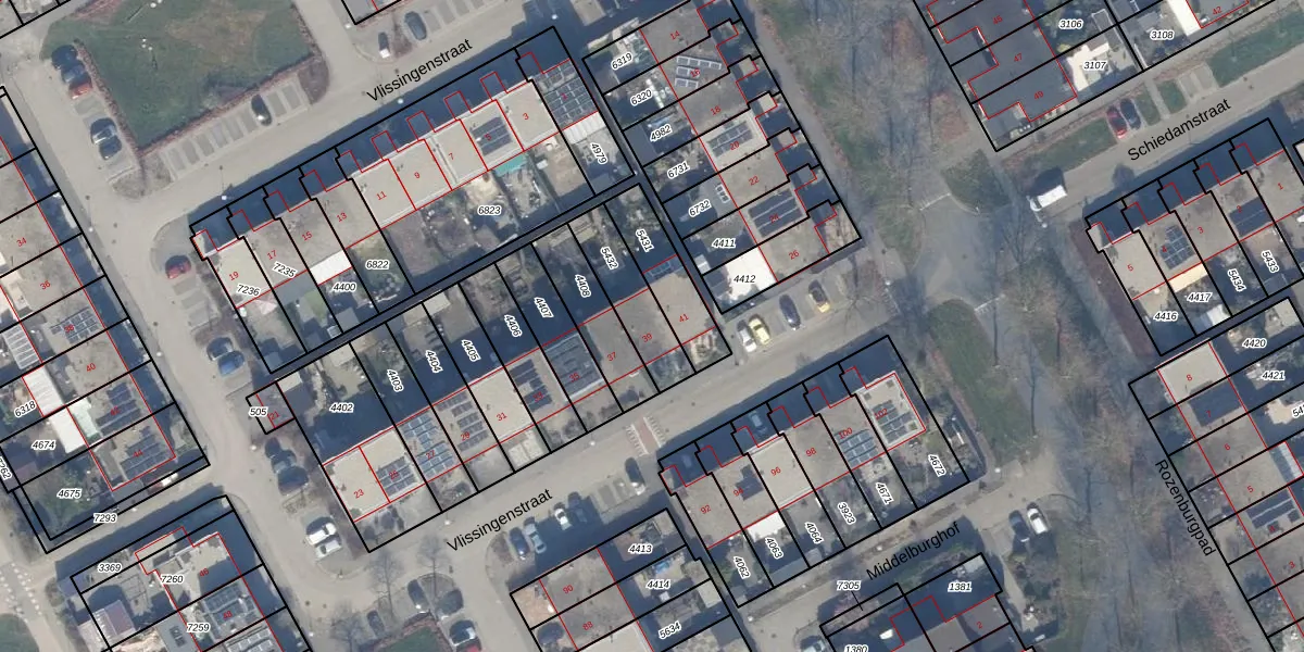 Vlissingenstraat 39 is gelegen op kadastraal perceel AMR04K5432. Deze kadastrale aanduiding is uniek en wordt gebruikt door het Kadaster om eigendomsrechten en andere zakelijke rechten vast te leggen. Het perceel maakt onderdeel uit van de kadastrale gemeente Almere.