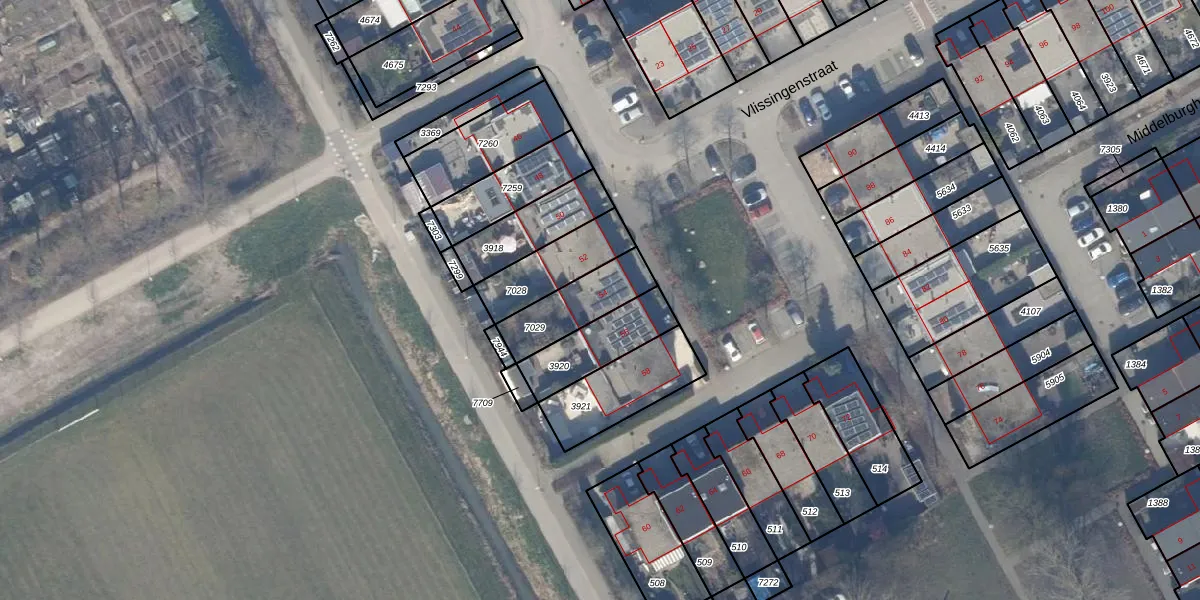 Het perceel waarop Vlissingenstraat 54 staat heeft een oppervlakte van 199 m². Dit is een middelgroot perceel. De perceeloppervlakte wordt geregistreerd door het Kadaster. Gedetailleerde informatie over de maten van dit perceel kunt u vinden in het rapport Kadastrale kaart met maatvoering van Vlissingenstraat 54.