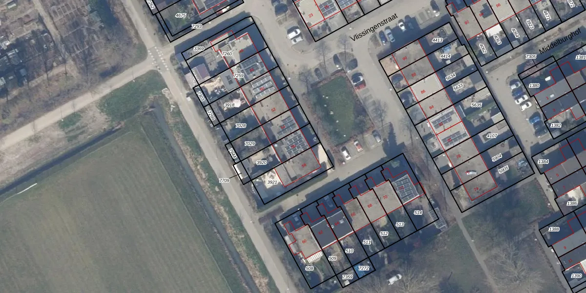 Het perceel waarop Vlissingenstraat 56 staat heeft een oppervlakte van 199 m². Dit is een middelgroot perceel. De perceeloppervlakte wordt geregistreerd door het Kadaster. Gedetailleerde informatie over de maten van dit perceel kunt u vinden in het rapport Kadastrale kaart met maatvoering van Vlissingenstraat 56.