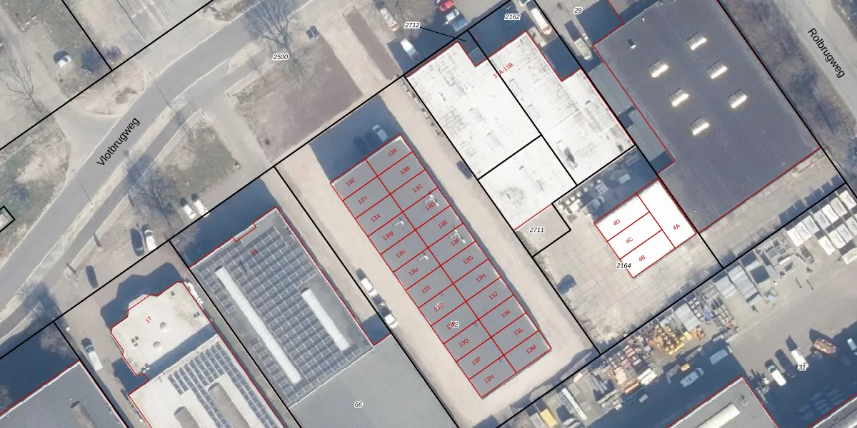 Het perceel waarop Vlotbrugweg 13-D staat heeft een oppervlakte van 2960 m². Dit is een zeer groot perceel. De perceeloppervlakte wordt geregistreerd door het Kadaster. Gedetailleerde informatie over de maten van dit perceel kunt u vinden in het rapport Kadastrale kaart met maatvoering van Vlotbrugweg 13-D.