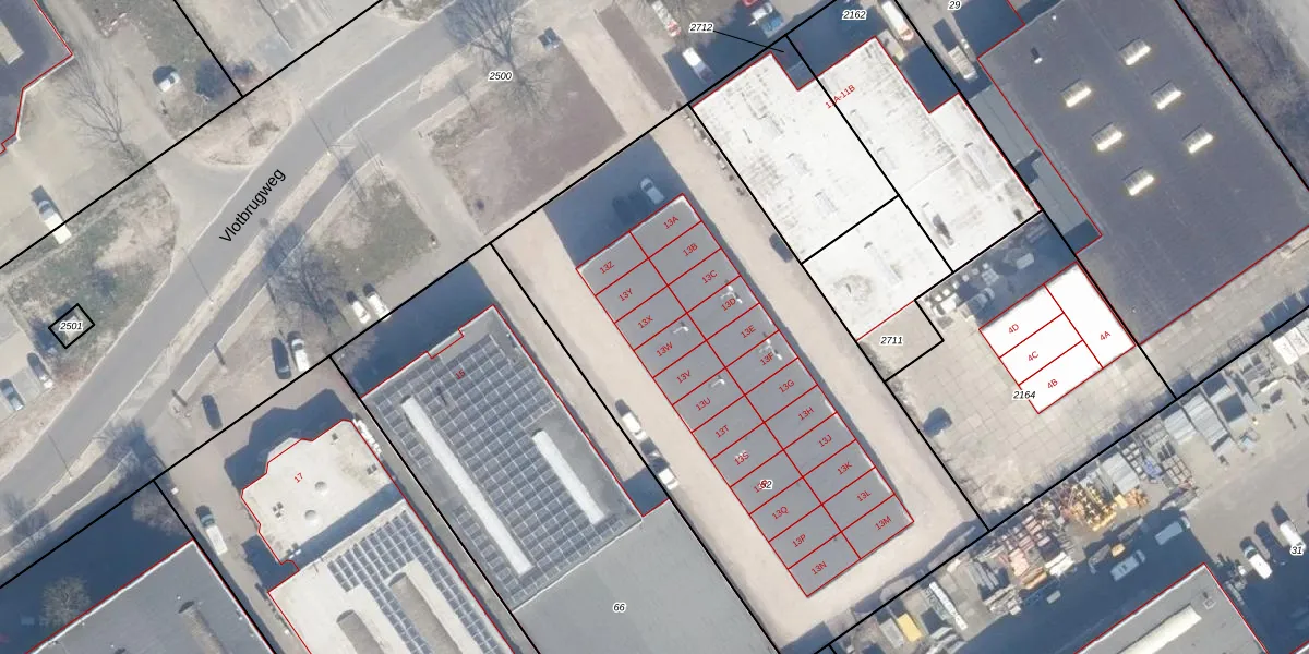 Het perceel waarop Vlotbrugweg 13-X staat heeft een oppervlakte van 2960 m². Dit is een zeer groot perceel. De perceeloppervlakte wordt geregistreerd door het Kadaster. Gedetailleerde informatie over de maten van dit perceel kunt u vinden in het rapport Kadastrale kaart met maatvoering van Vlotbrugweg 13-X.