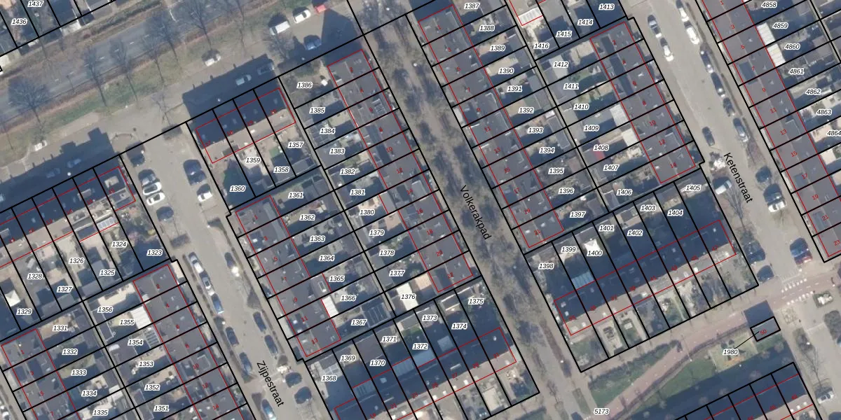 Gebruik de zoekbalk of klik op een perceel voor informatie over de adressen binnen dit perceel.