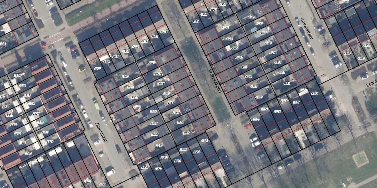 Gebruik de zoekbalk of klik op een perceel voor informatie over de adressen binnen dit perceel.