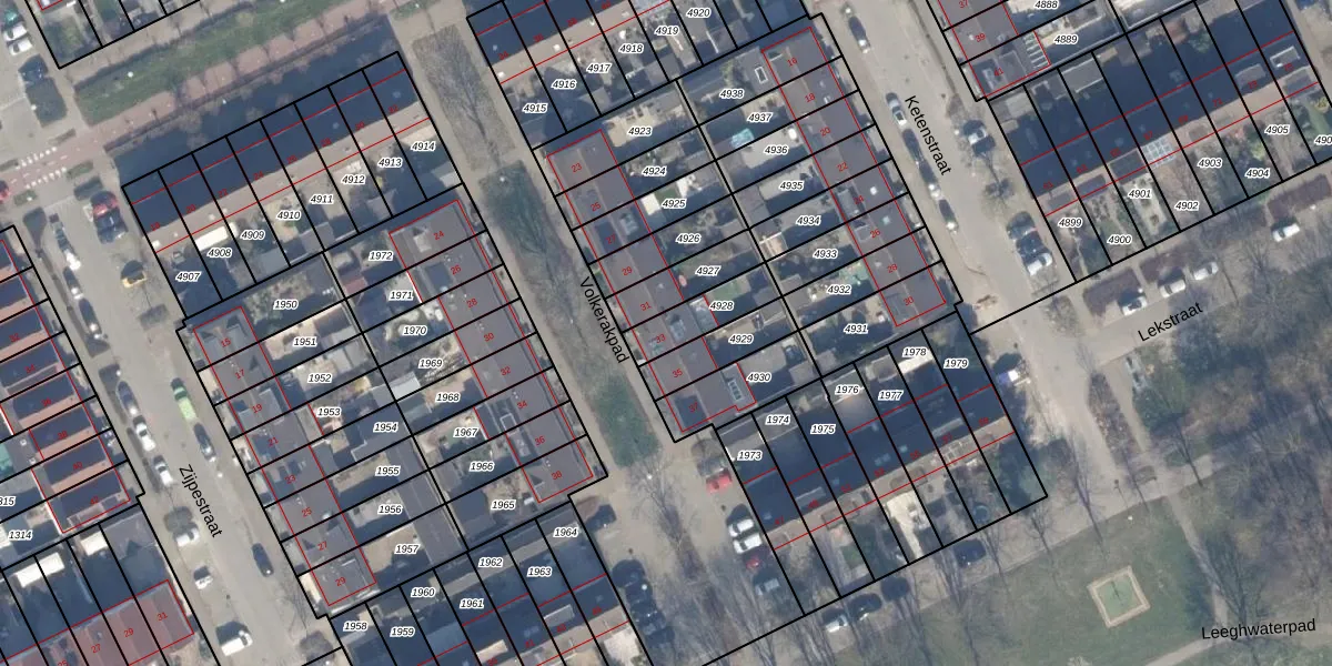 Gebruik de zoekbalk of klik op een perceel voor informatie over de adressen binnen dit perceel.