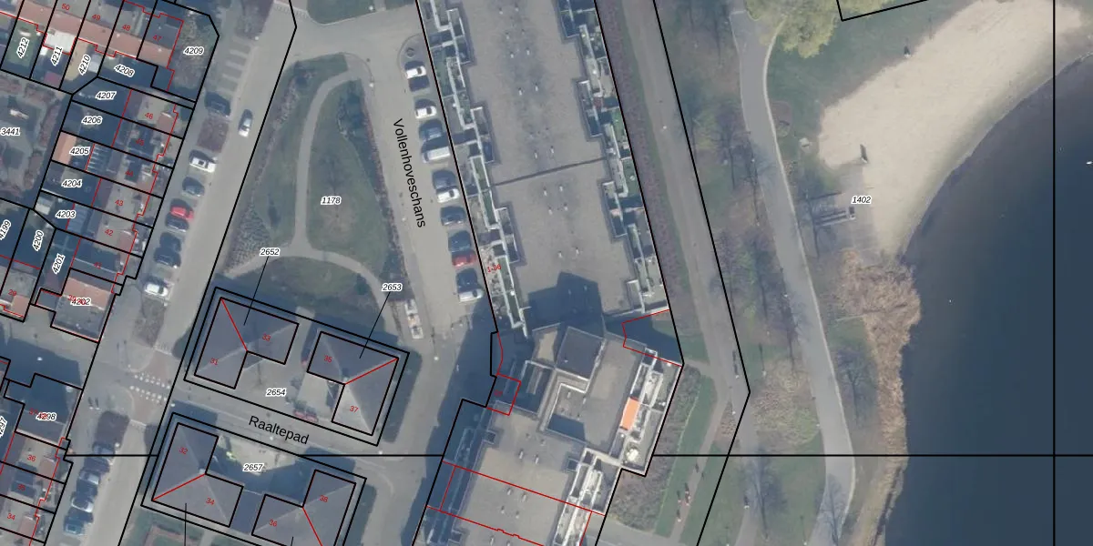 Het perceel waarop Vollenhoveschans 38 staat heeft een oppervlakte van 8079 m². Dit is een zeer groot perceel. De perceeloppervlakte wordt geregistreerd door het Kadaster. Gedetailleerde informatie over de maten van dit perceel kunt u vinden in het rapport Kadastrale kaart met maatvoering van Vollenhoveschans 38.