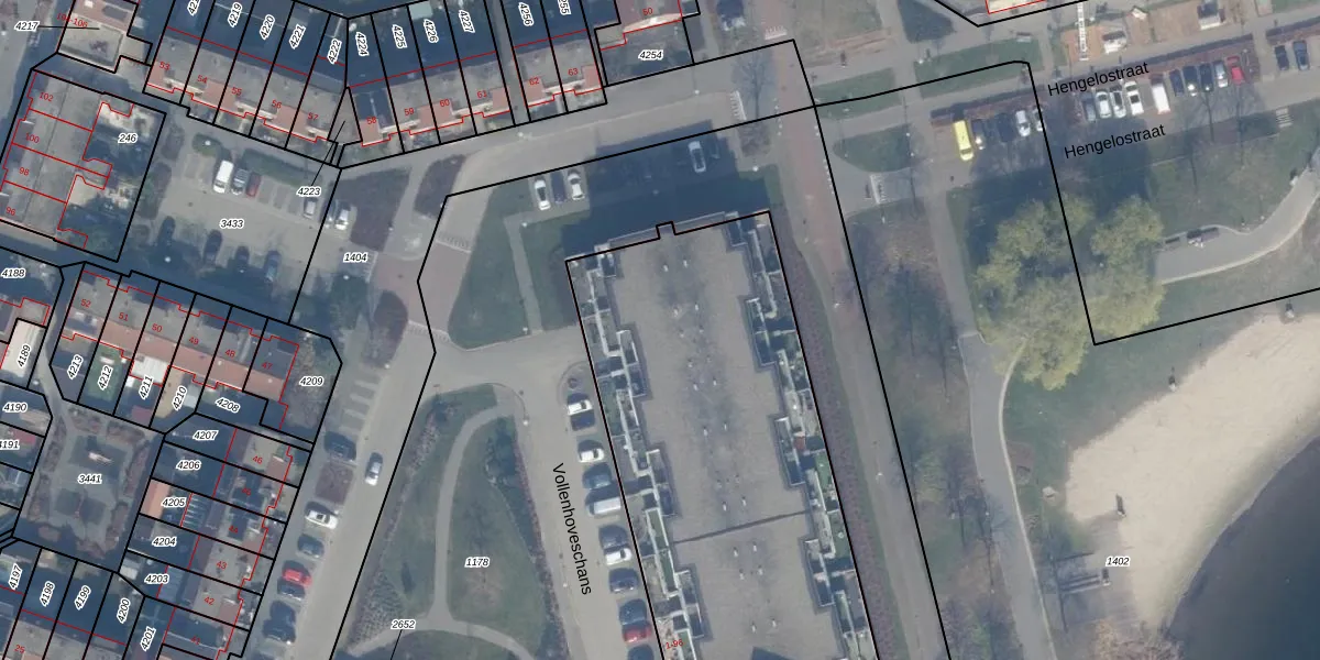 Het perceel waarop Vollenhoveschans 49 staat heeft een oppervlakte van 8079 m². Dit is een zeer groot perceel. De perceeloppervlakte wordt geregistreerd door het Kadaster. Gedetailleerde informatie over de maten van dit perceel kunt u vinden in het rapport Kadastrale kaart met maatvoering van Vollenhoveschans 49.