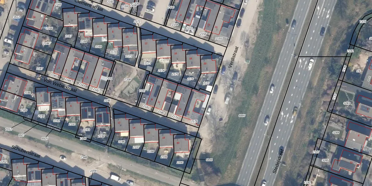 Het perceel waarop Von Weberstraat 13 staat heeft een oppervlakte van 156 m². Dit is een middelgroot perceel. De perceeloppervlakte wordt geregistreerd door het Kadaster. Gedetailleerde informatie over de maten van dit perceel kunt u vinden in het rapport Kadastrale kaart met maatvoering van Von Weberstraat 13.