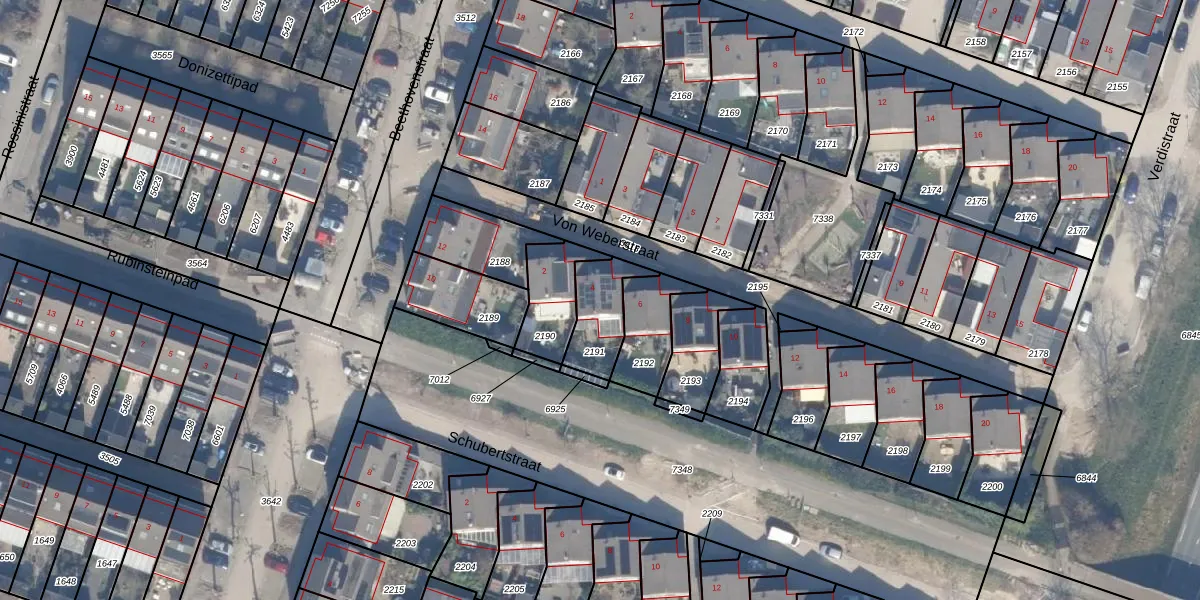 Het perceel waarop Von Weberstraat 4 staat heeft een oppervlakte van 166 m². Dit is een middelgroot perceel. De perceeloppervlakte wordt geregistreerd door het Kadaster. Gedetailleerde informatie over de maten van dit perceel kunt u vinden in het rapport Kadastrale kaart met maatvoering van Von Weberstraat 4.