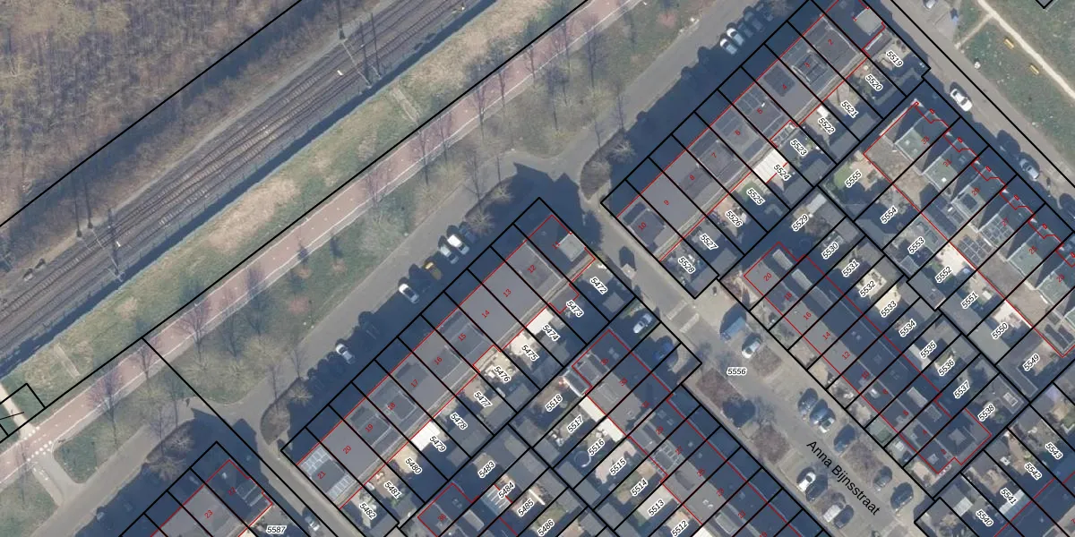 Het perceel waarop Vondelstraat 12 staat heeft een oppervlakte van 155 m². Dit is een middelgroot perceel. De perceeloppervlakte wordt geregistreerd door het Kadaster. Gedetailleerde informatie over de maten van dit perceel kunt u vinden in het rapport Kadastrale kaart met maatvoering van Vondelstraat 12.